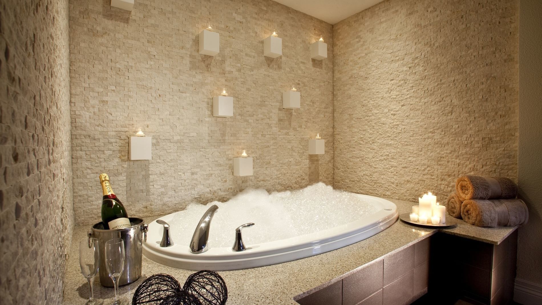 Our Enclave King Spa suite offers guests a sophisticated hotel room showcasing modern fixtures, a pillow top mattress, a 40-inch flat screen television, and a hydro-massage tub. This suite offers a serene environment in which to relax.