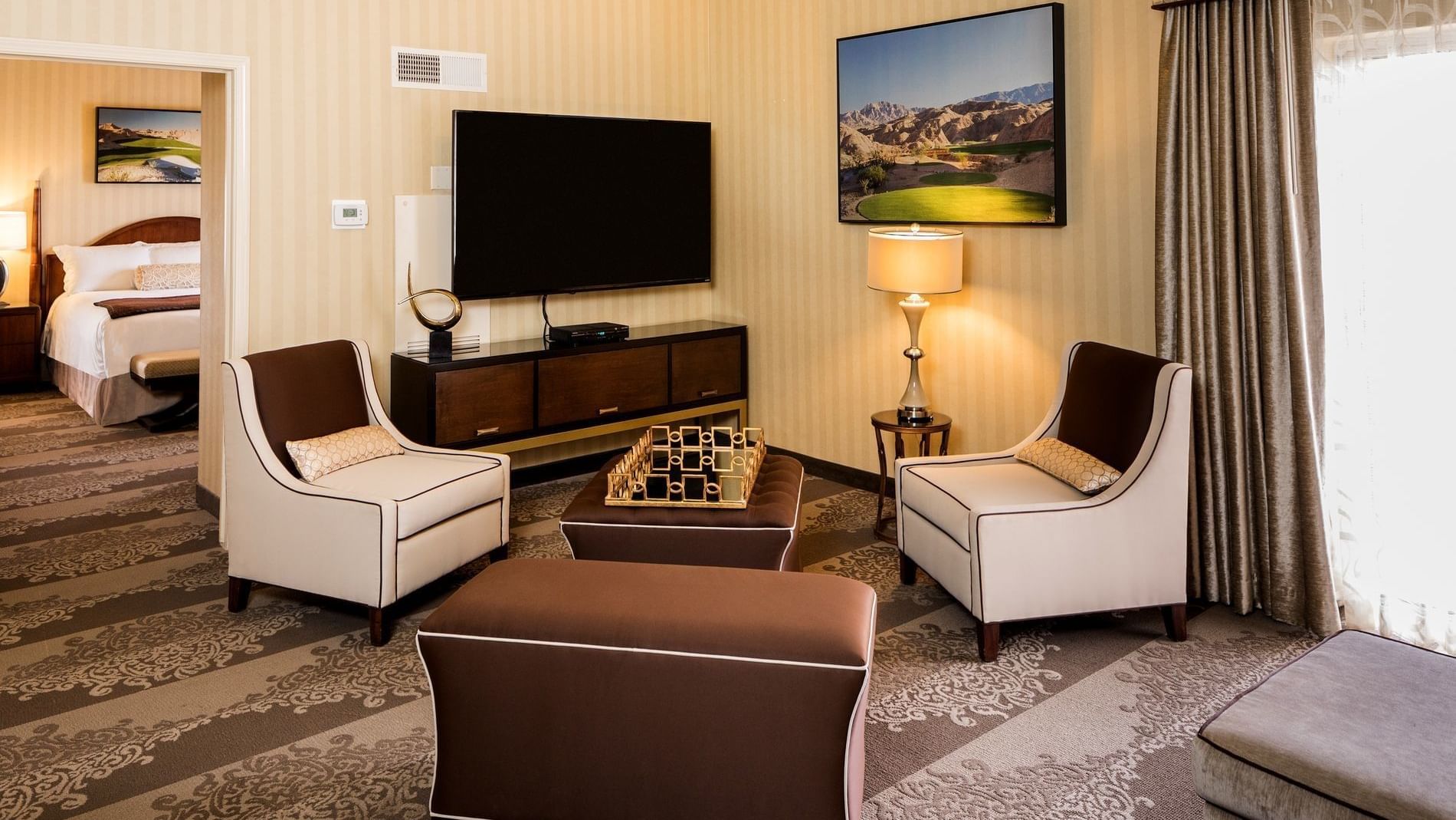 Sink into the welcoming comfort of the oversized sofa and loveseat in the Paramount suite and relax while watching the 50-inch flat screen television. Plus, sleep well with Brooklyn Bedding's Sedona Elite mattress with top-class sleep technology.
