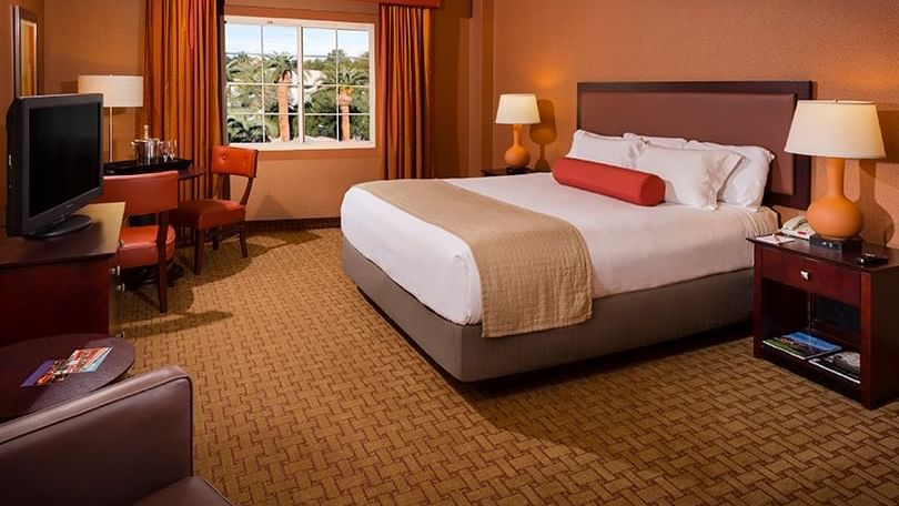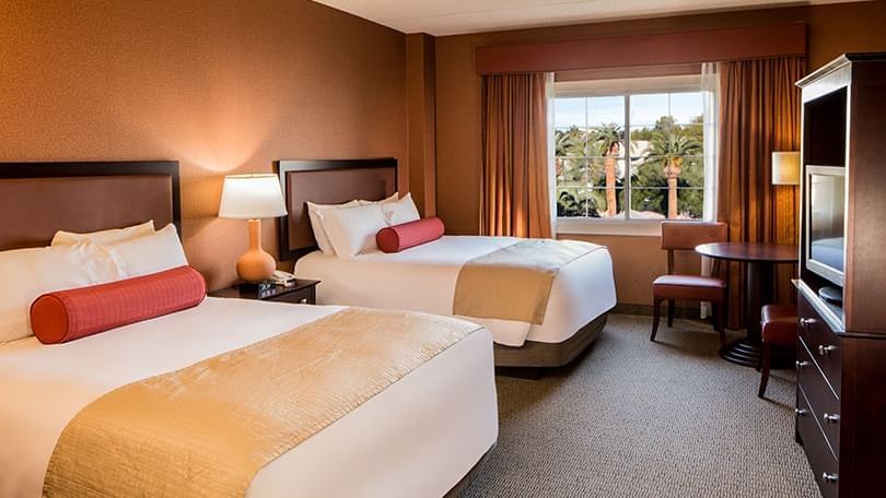 Relax in one of our inviting Resort King or Queen rooms. This 387 square-foot room comes with either one king bed or two queen beds, a leather chair and marble-topped vanity.